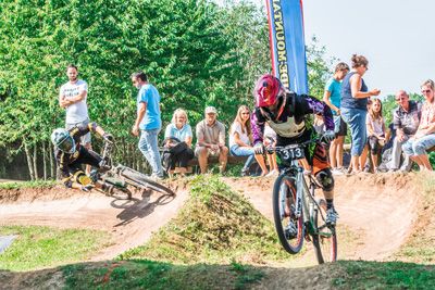 Nachdem die bewährte Dual Slalom Strecke in Winnenden seit ihrer Eröffnung 2009 fast unverändert blieb und Jahr für Jahr für spannende Rennen sorgte, war für 2016 dank einer Geländeerweiterung die Chance für ein komplett neues letztes Streckendrittel gekommen. Obwohl es Bedenken gab, den einzigartigen, flowigen Streckencharakter zu verlieren, entschied man sich für eine Streckenführung mit Steinfeld und offenem Wiesenstück. Dass die Strecke dadurch wenig von ihrem Flow eingebüßt hat und den Fahrern mit neuen Herausforderungen umso mehr Spaß machte, zeigte sich bereits im freien Training am Samstagnachmittag. Die verlängerte Fahrzeit auf 30-40s sorgte allerdings auch dafür, dass die Fitness eine nicht zu unterschätzende Rolle spielen sollte, wenn man auf der langen Zielgeraden nochmal angreifen wollte. Nochmal ein paar extra Meter Streckenlänge bekamen die U11-Fahrer, die zum Teil noch auf 20“ unterwegs sind und für die deshalb eine Variante ohne Steinfeld gesteckt wurde.