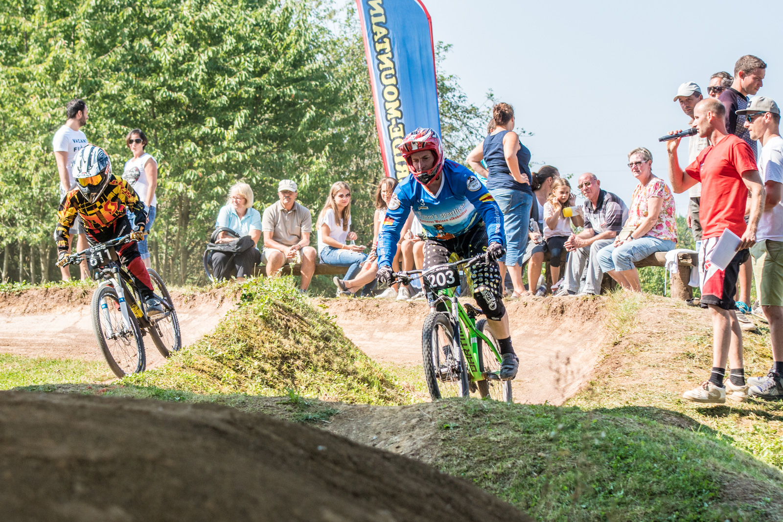 Richtig knapp ging es bei den Lizenzfahrern her. Im kleinen Finale sicherte sich Ingo Kaufmann (Bike Team Steinweiler) nach seinem Sturz im Halbfinale mit nur einem Hundertstel Vorsprung Platz 3 vor dem ebenso stark fahrenden Nikolas Mihaljevic (Freebikers Weinstadt). Im großen Finale konnte Robin Bregger (Bike-Park-Wolfach) nach einem Sturz im ersten Lauf leider nicht mehr ernsthaft angreifen. Dennoch ließ es sich Jonas Gauß (Rad-Club 93 Winnenden) nicht nehmen, im Finale mit 29,91s nochmal die Tagesbestzeit zu unterbieten. Nach einem eher überraschenden dritten Platz in der Qualifikation, unterstrich er damit erneut seine Stellung als Seriensieger in Winnenden und holte auch 2016 wieder Platz 1.